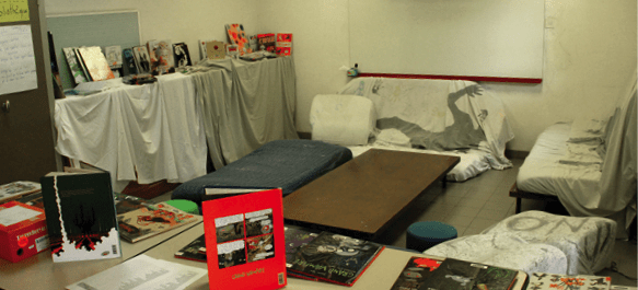 Celui qui est aménagé de manière permanente dans un lieu (ludothèque dans une structure d’accueil, salle poterie, bibliothèque, etc.)