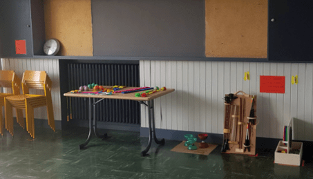 Si on dispose des pinceaux au bout d’une salle et que la table peinture est de l’autre côté, l’aménagement ne sera pas pratique : il oblige en effet les usagères à faire de nombreux déplacements. Si on dispose un coin séchage trop loin de la peinture, peu de personnes penseront à l’utiliser pour faire sécher leurs œuvres, et, pour celles qui iront, elles saliront probablement le sol lors du trajet !