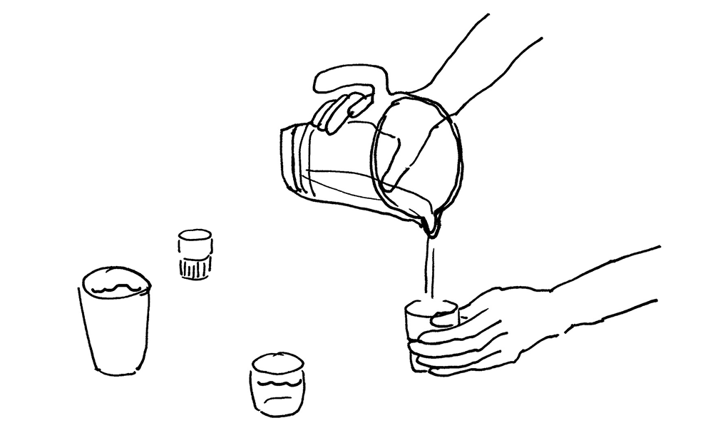 En tout cas, dans la situation que je voulais regarder plus en détail, des cruches se sont vidées un petit peu, et doucement. Elles ont laissé les verres d’eau se déverser selon de nouvelles règles qu’ils avaient décidées ensemble. Parmi les verres d’eau, beaucoup sont devenus des cruches. Ces nouvelles cruches se versent de l’eau mutuellement, comme bon leur semble.