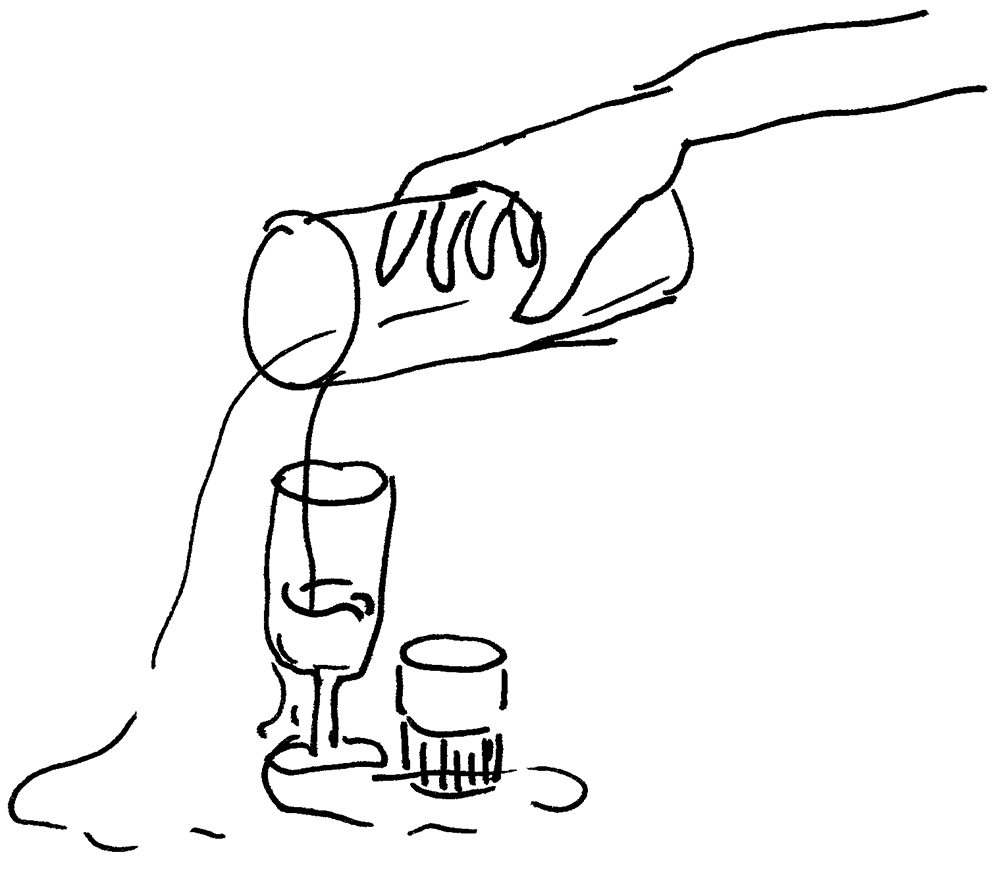 Mais il y a une chose importante que beaucoup ont oubliée depuis : aucun verre n’est vide. Les verres n’ont jamais été vides très longtemps, et ils ont très vite contenu une certaine quantité d’eau. Sauf qu’une situation s’est instaurée comme dominante au fil du temps : une grande cruche, considérée comme pleine d’eau, a pour but de se déverser dans plusieurs verres considérés comme vides. Mais si les verres ne sont pas vides, alors il y a quelque chose que l’on a mal pensé. Supposons que verser de l’eau dans plusieurs contenants est ce que nous voulons garder et continuer.