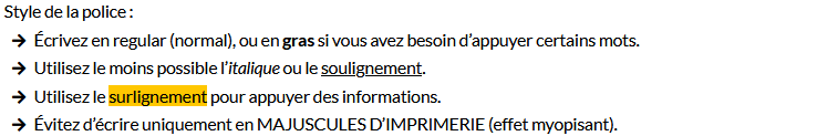 Ainsi, n’hésitez pas à prendre quelques minutes supplémentaires pour réfléchir aux styles que vous allez utiliser (couleur, police d’écriture, alignement, etc.), ceci afin de pouvoir unifier l’ensemble, et, in fine, de gagner du temps si vous avez plusieurs supports à produire.