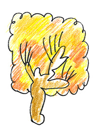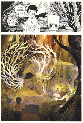 - Certains dessins sont-ils minimalistes ? Par exemple, comment une forêt est-elle suggérée grâce à un aplat vert garni uniquement de quelques traits ?
