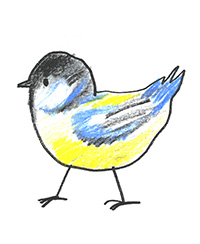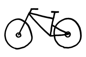 → Un vélo[29] = quatre ronds pour les roues, deux triangles pour le cadre, des bâtons pour la fourche, la selle et le guidon.