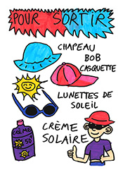 1. Vous avez fait une excursion à la Dune du Pilat en séjour de vacances avec un groupe d’enfants, et ils et elles veulent exposer leurs dessins et leurs souvenirs naturels pour celles et ceux qui ne sont pas venu·e·s. Ils et elles font une affiche[49] pour prévenir où se trouve le lieu d’exposition dans le centre, et décident de coller du sable sur le tiers du bas de l’affiche pour que l’on comprenne que leur exposition a un lien avec le sable. Ici, la texture peut venir augmenter la curiosité du spectateur ou de la spectatrice, l’idée semble adéquate.