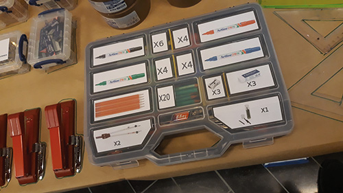 Ainsi, la photographie peut être réellement utile pour l’affichage et l’aménagement. Par exemple, lorsqu’une photographie du contenu de chacune des boîtes d’une régie est collée sur les couvercles de celles-ci[53], il est bien plus simple de la maintenir organisée. Ainsi, si on voit les ballons sur le couvercle d’une caisse, on sait sans l’ouvrir qu’on doit les ranger dans celle-ci. Si, par contre, une caisse contient des ballons en plastique et une autre des ballons en cuir, et que la confusion est possible, ajouter les textes Ballons en cuir et Ballons en plastique sur les photographies peut s’avérer aidant.