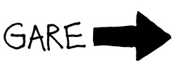 → Le panneau[32] possède le pictogramme de la gare + une flèche + un texte indiquant « Gare » : seules les personnes aveugles sont exclues (ce qui est presque toujours le cas avec l’affichage).